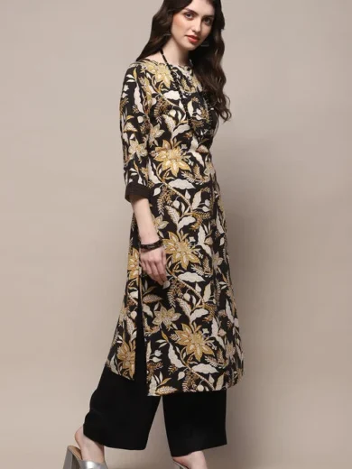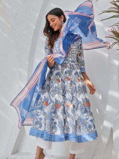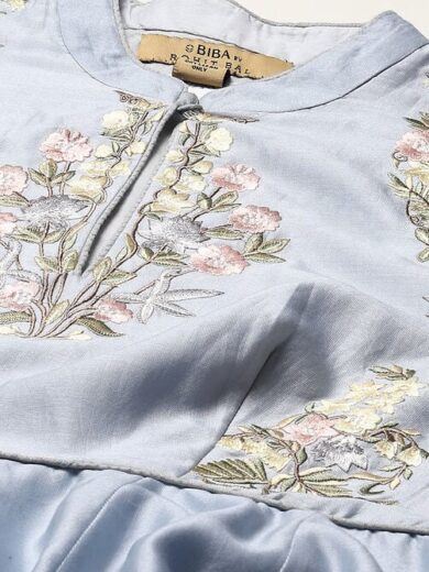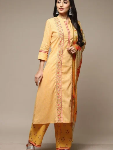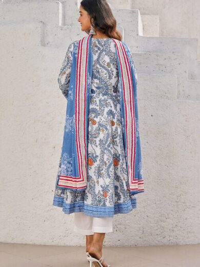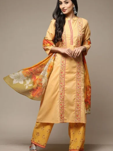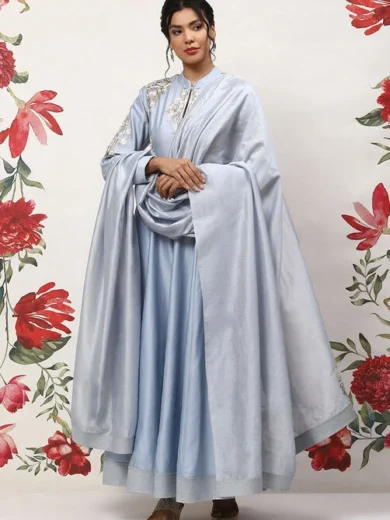Women's Silk Blend Floral Embroidered Straight Kurta Pant With Dupatta